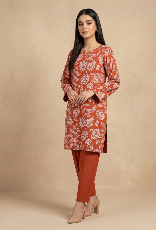 Burnt Orange Embroidered Lawn 2-Piece Suit