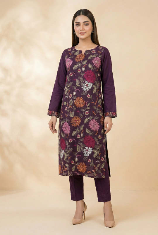 Plum Purple Embroidered Lawn 2-Piece Suit