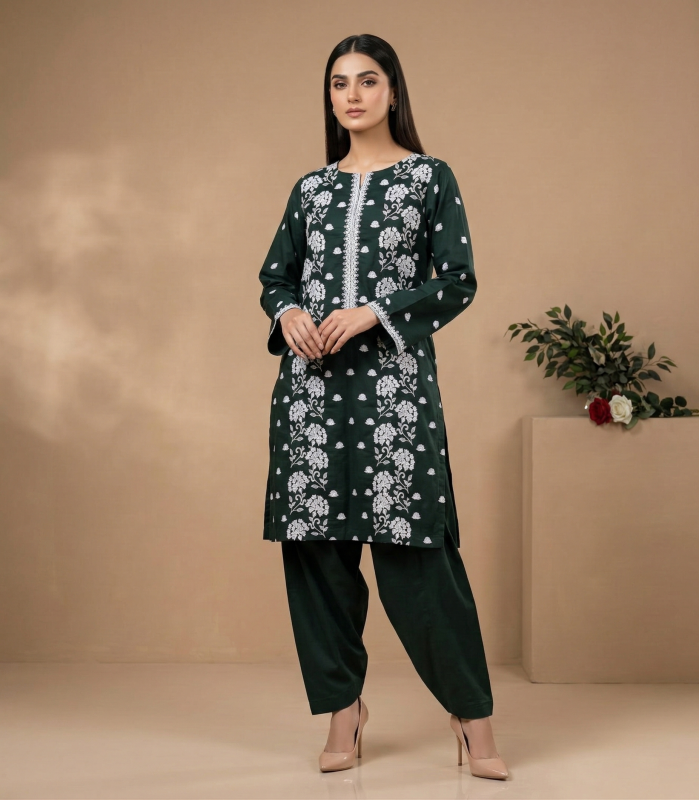 Dark Emerald Embroidered Lawn 2-Piece Suit