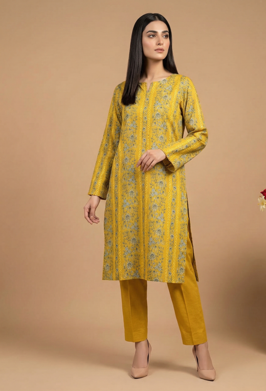 Golden Yellow Embroidered Lawn 2-Piece Suit