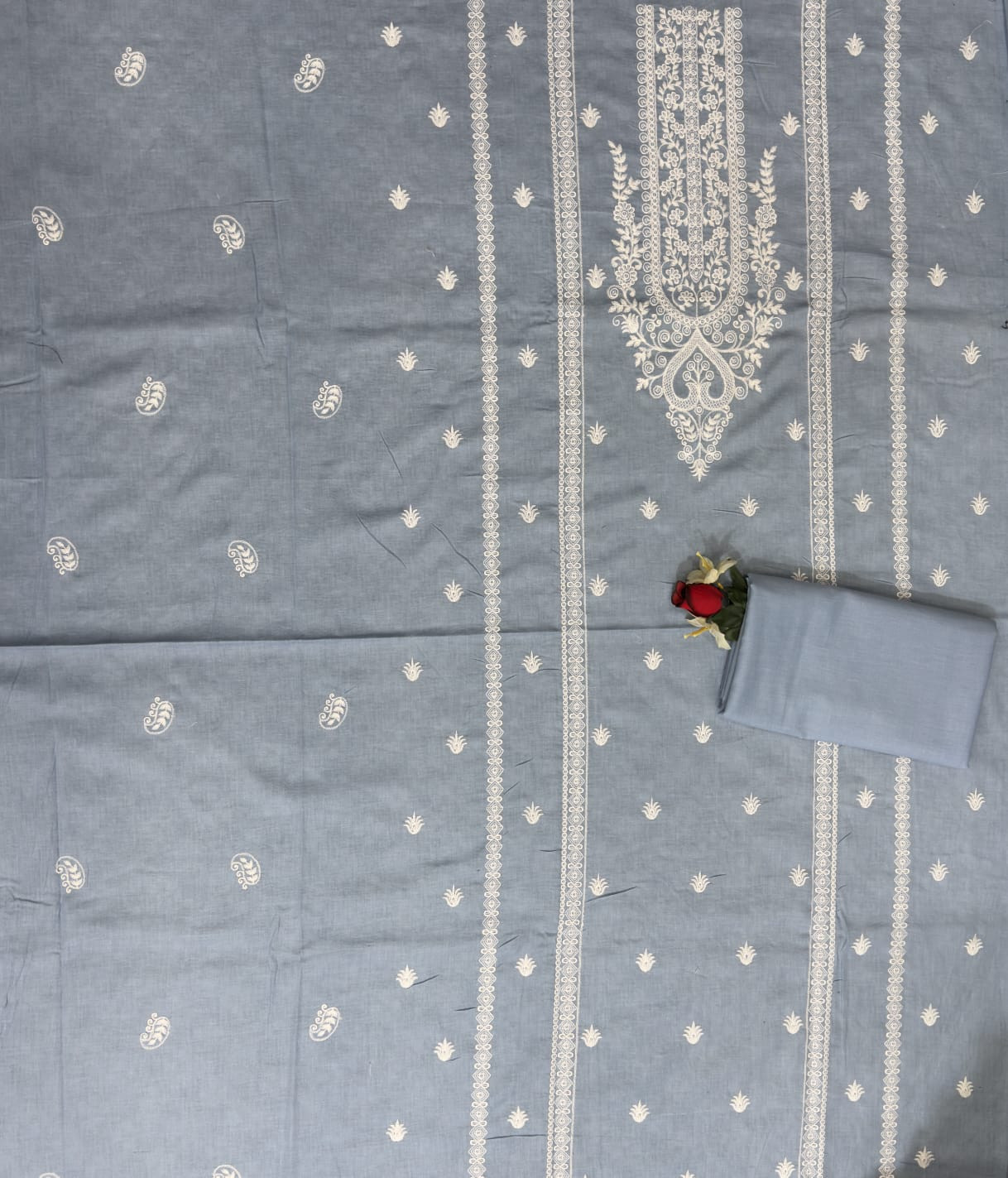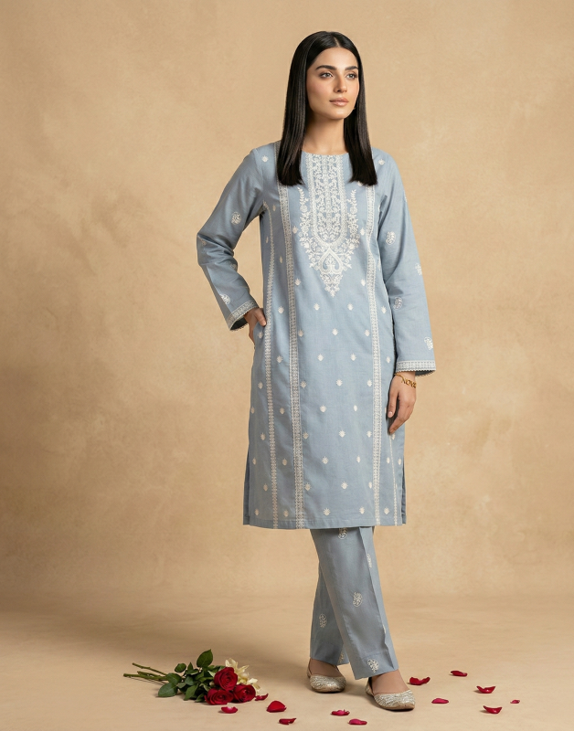 Muted Slate Blue Embroidered Lawn 2-Piece Suit
